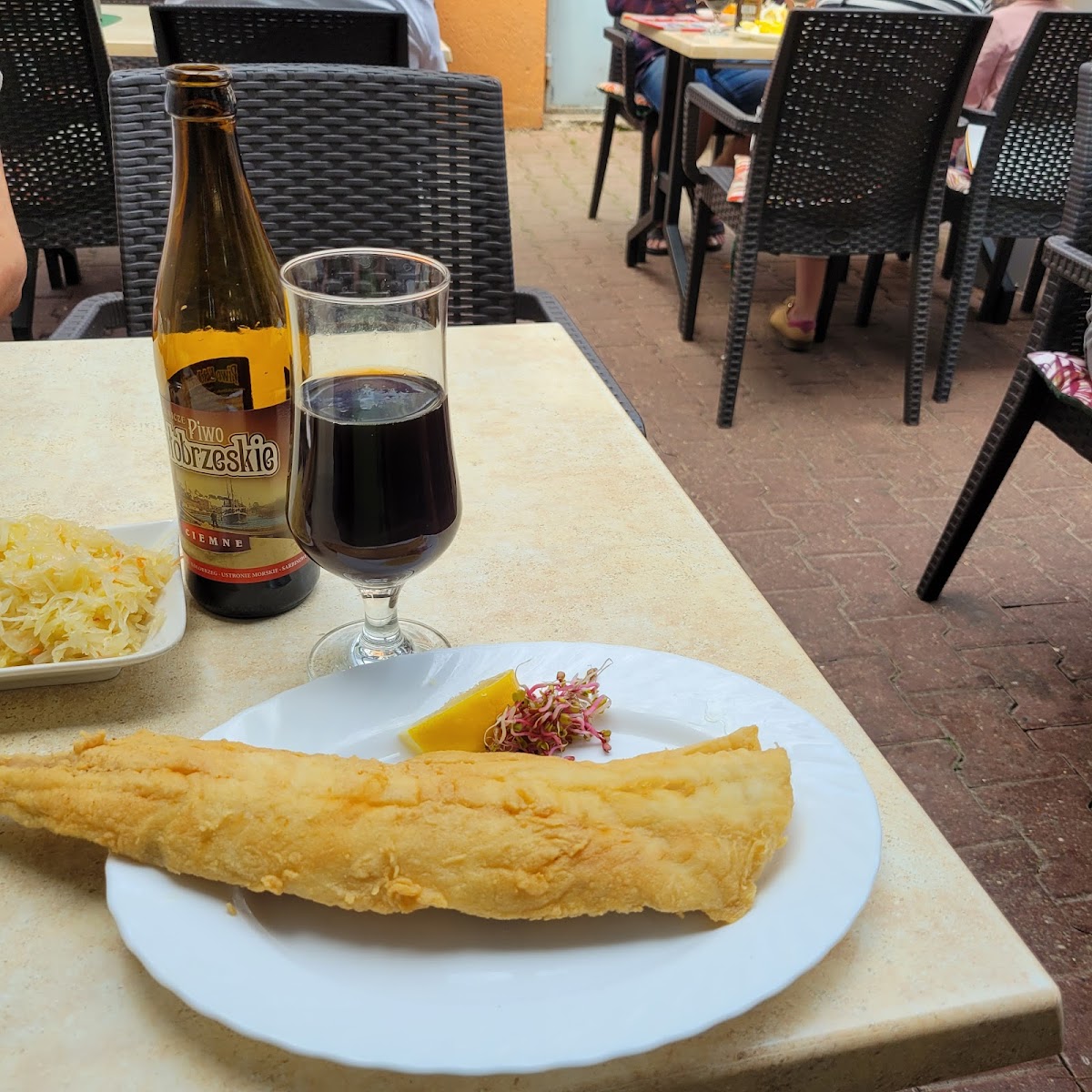While the setting may not be polished or perfect, it is real — a genuine reflection of a place where people gather for straightforward, fresh fish dishes and the kind of ease that only a local haunt by the water can offer. Whether you choose to sit outside watching the world pass by or seek shelter under the patio’s warm cover, Smażalnia Ryb „U Rybickiego” holds a little corner of Kołobrzeg’s maritime spirit waiting to be discovered.