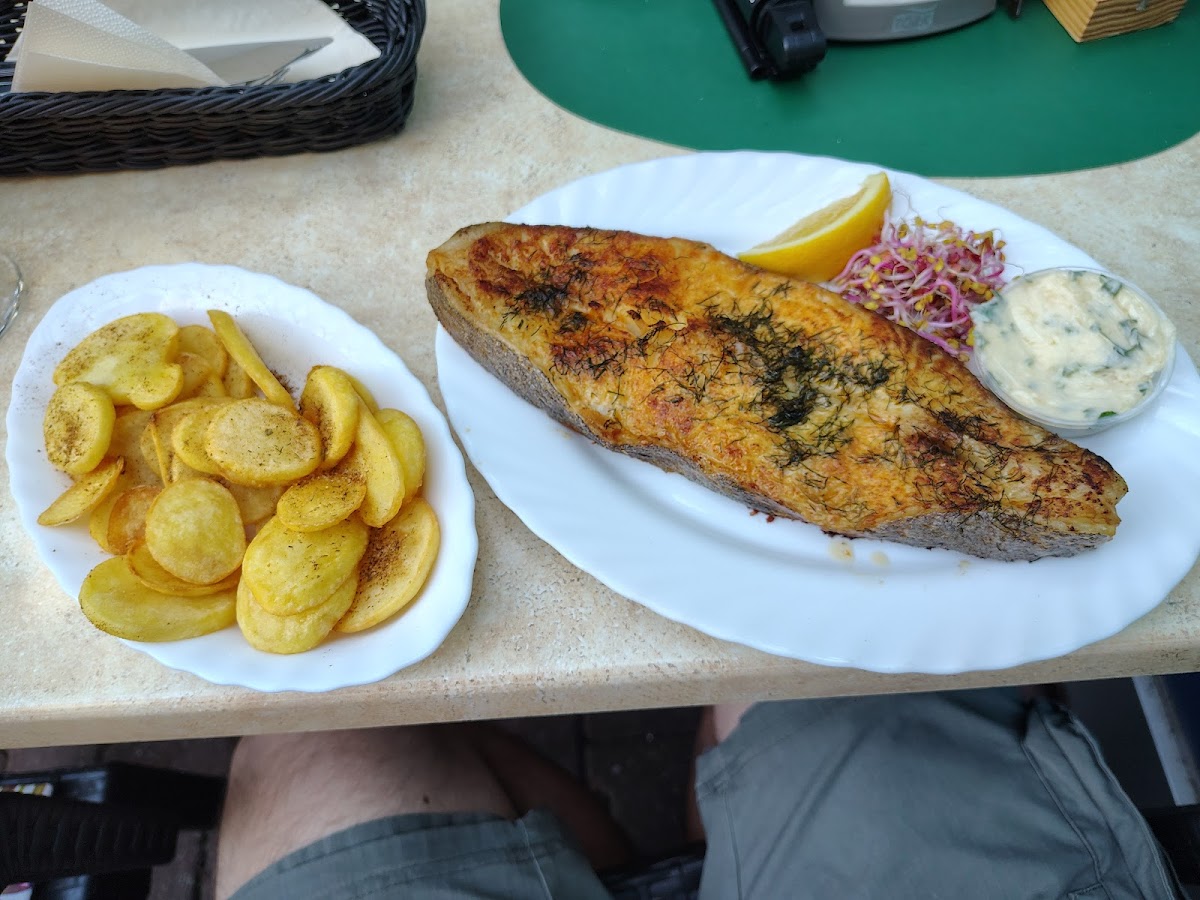 We've paid 98 PLN for a lunch for two persons. Our meal consisted a grilled cod, burbot with chips, vegetable salad and spinach. Everything what we've ordered had seemed to be fresh and properly prepared. Restaurant is placed close to the sea and promenade. Another pros of this place are blankets given for the customers. In general a little pricey but worth visiting.